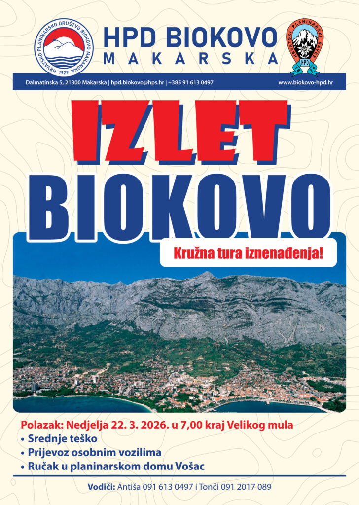 Polazak: Subota 07. 02. 2026. s Autobusnog kolodvora u 07:00 sati. Nakon okupljanja grupa svi sudionici odlaze do polazne točke gdje ćemo se podijeliti u dvije grupe, ovisno o vašim željama odnosno vašoj fizičkoj spremnosti. Tura A grupe: Kotišina – Proslap – Sinjal – Planinarski dom Vošac (cca 7 sati) u kojoj ćemo Vam, u […]